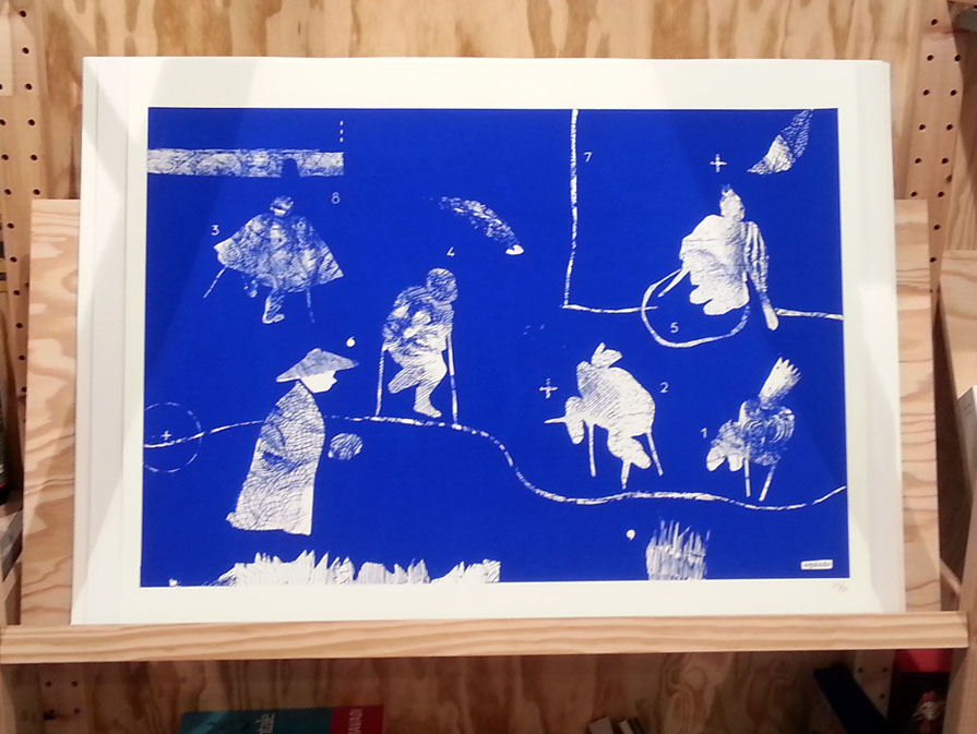 À la librairie La Petite Égypte, (35 rue des Petits Carreaux, 75002, Paris - Métro Sentier), vous pouvez vous offrir un exemplaire de cette belle sérigraphie tirée de Cendres des hommes et des bulletins, imprimée par l'atelier Co-Op de Maisons-Alfort.